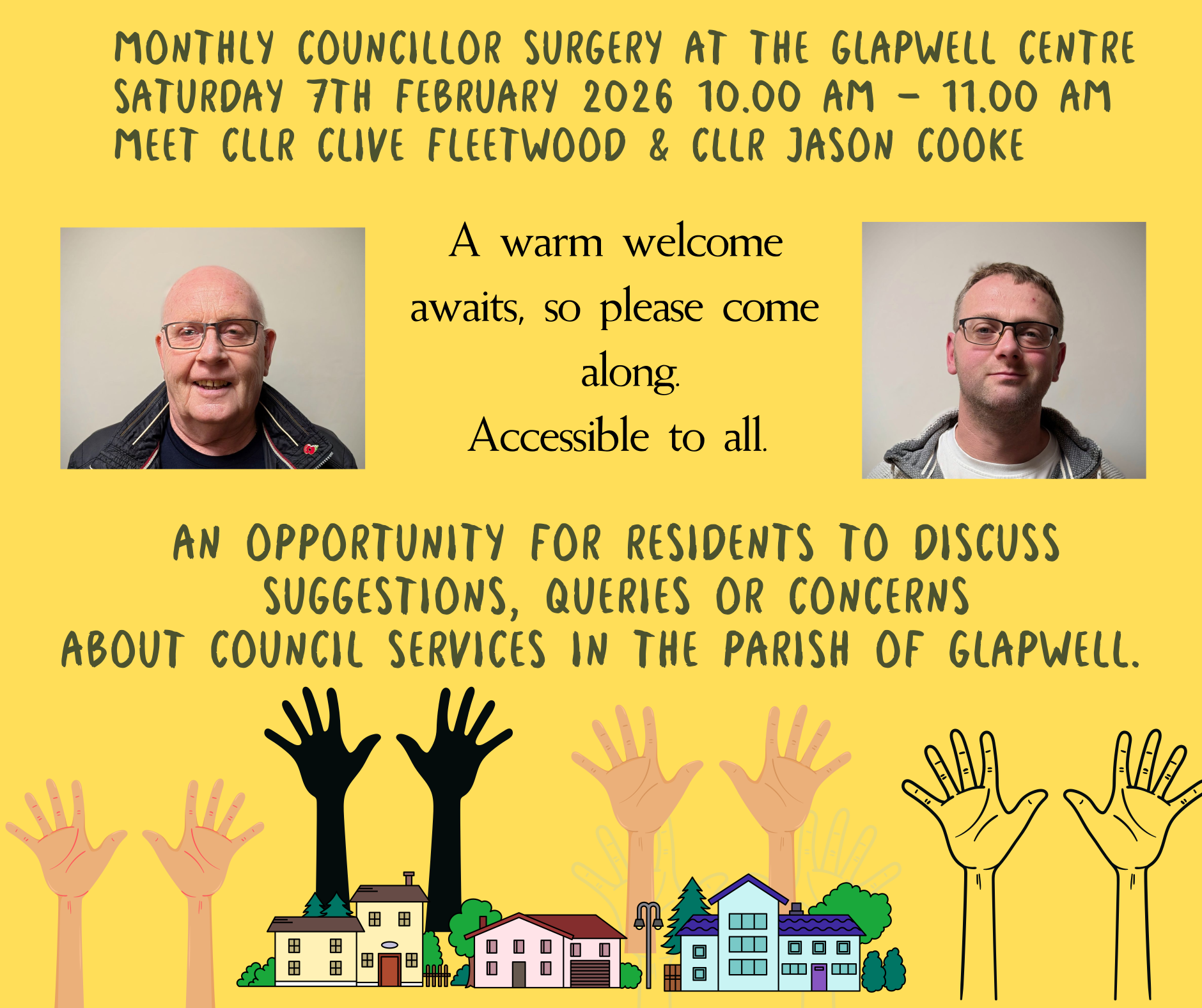 Share View All Articles Share Drop in Councillor Surgery - Saturday 7th February 10:00 am to 11.00 am 12th of January, 2026 View Attached File